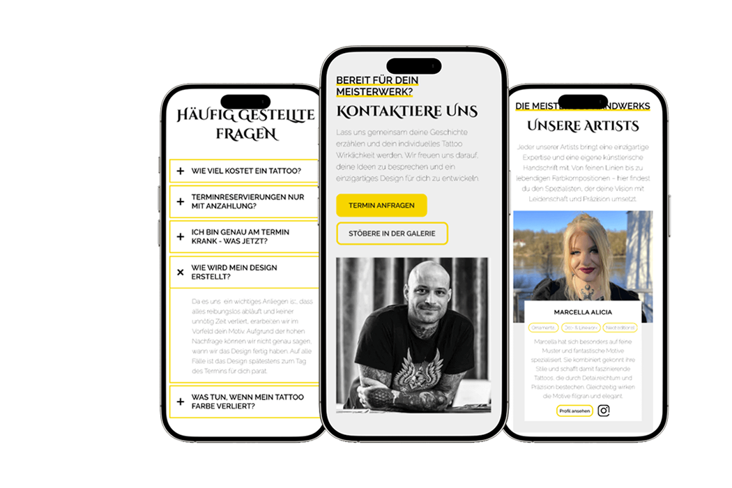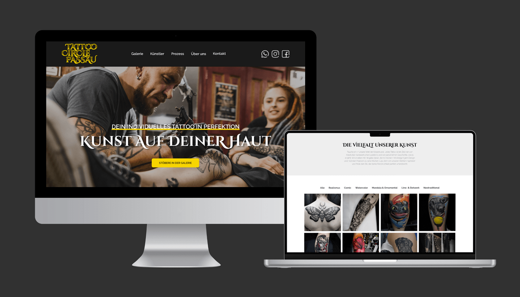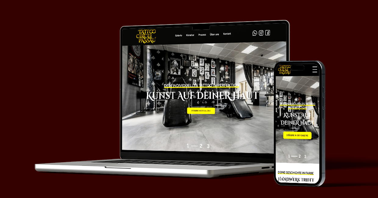 Tattoo Circle Passau leistet großartige Arbeit auf der Haut. Meine Motivation für das Redesign war es, genau diese Qualität auch digital noch stärker spürbar zu machen. Die bestehende Website funktionierte, lieferte aber spannende Ansatzpunkte für eine Weiterentwicklung, um sie an moderne Nutzungsgewohnheiten anzupassen: